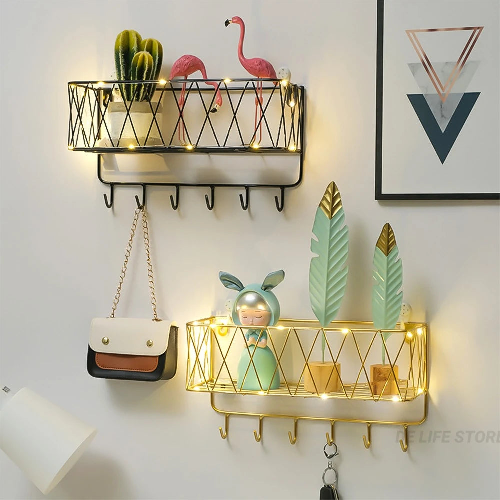 Luxury Gold Bathroom Shelf Without Drilling Metal Shower Storage Basket With Hook
